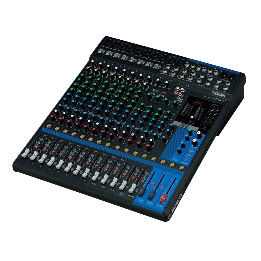 Consola profesional de 16 canales ideal para eventos en vivo, bandas, DJs y presentaciones corporativas. La Yamaha MG16XU ofrece excelente calidad de sonido, efectos incorporados y conexión USB para grabación o reproducción directa desde la computadora. Es confiable, versátil y fácil de usar, perfecta para manejar múltiples micrófonos, instrumentos y fuentes de audio en eventos medianos y grandes.